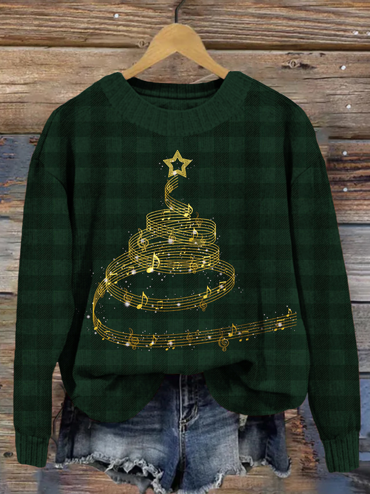 Music Notes Christmas Tree Vintage Plaid Sweater